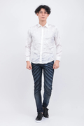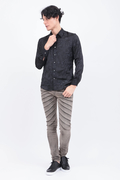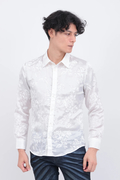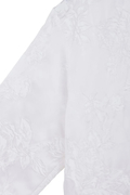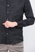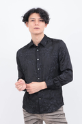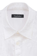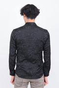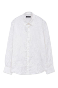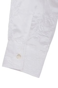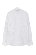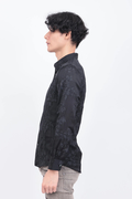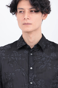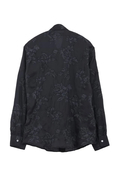 サテンオーガンジーに、熟練の職人によるハンドプリントと独自のシュリンク加工を施した、フラワーシルエットプリントシャツ。