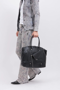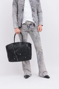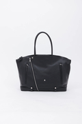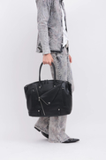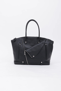 ダブルライダースジャケットのディテールを落とし込んだ、エッジィな佇まいのボストン調トートバッグ。