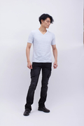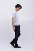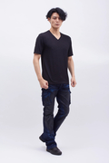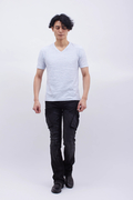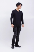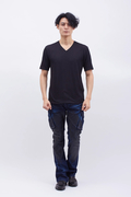 通常のデニムより強い伸縮性があり、タイトなシルエットでもストレスなく着用できます。